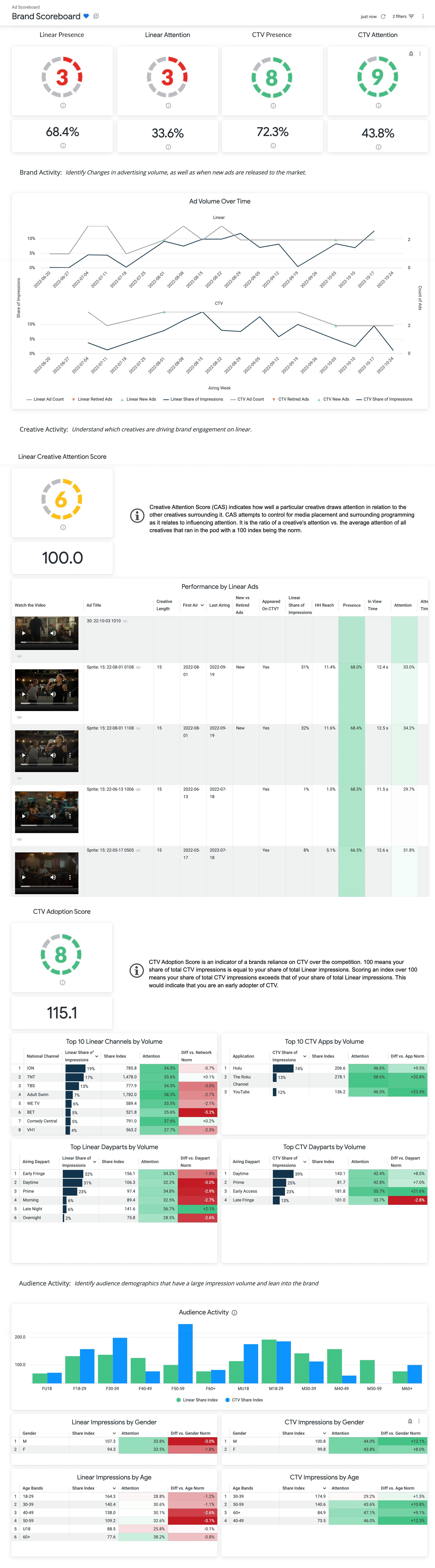 Monitor Attention performance for any brand - your own or your competitors - across Linear and CTV.