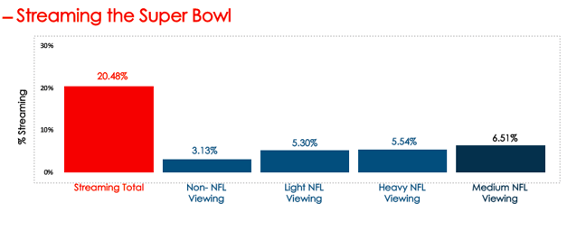 How we watched the game may have been a little different this year, as well, as viewers continue to embrace streaming. TVision's data shows that more than 20% of all households with streaming access chose to watch the game that way. Most streamers were regular viewers of NFL games.